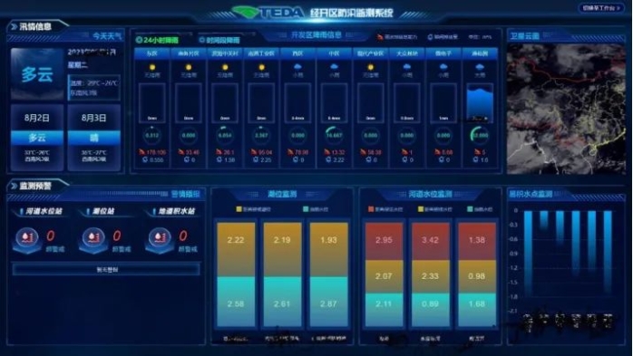 “基于大数据、物联网技术,我们接入水库、河道、城市重点防范部分等监测点位的数据,通过24小时数据采集分析,实时查看最新水位、流量数据。”工作人员表示,由电科太极承建的天津市经开区防汛管理平台,对该区10个片区的监测站点实现了24小时数据采集分析。自2023年入汛以来,该平台采集近百万条监测数据,用户通过平台累计发布预警信息百余次,预警短信发送万余条,为今年天津市经开区的防汛应急工作提供了重要支撑。